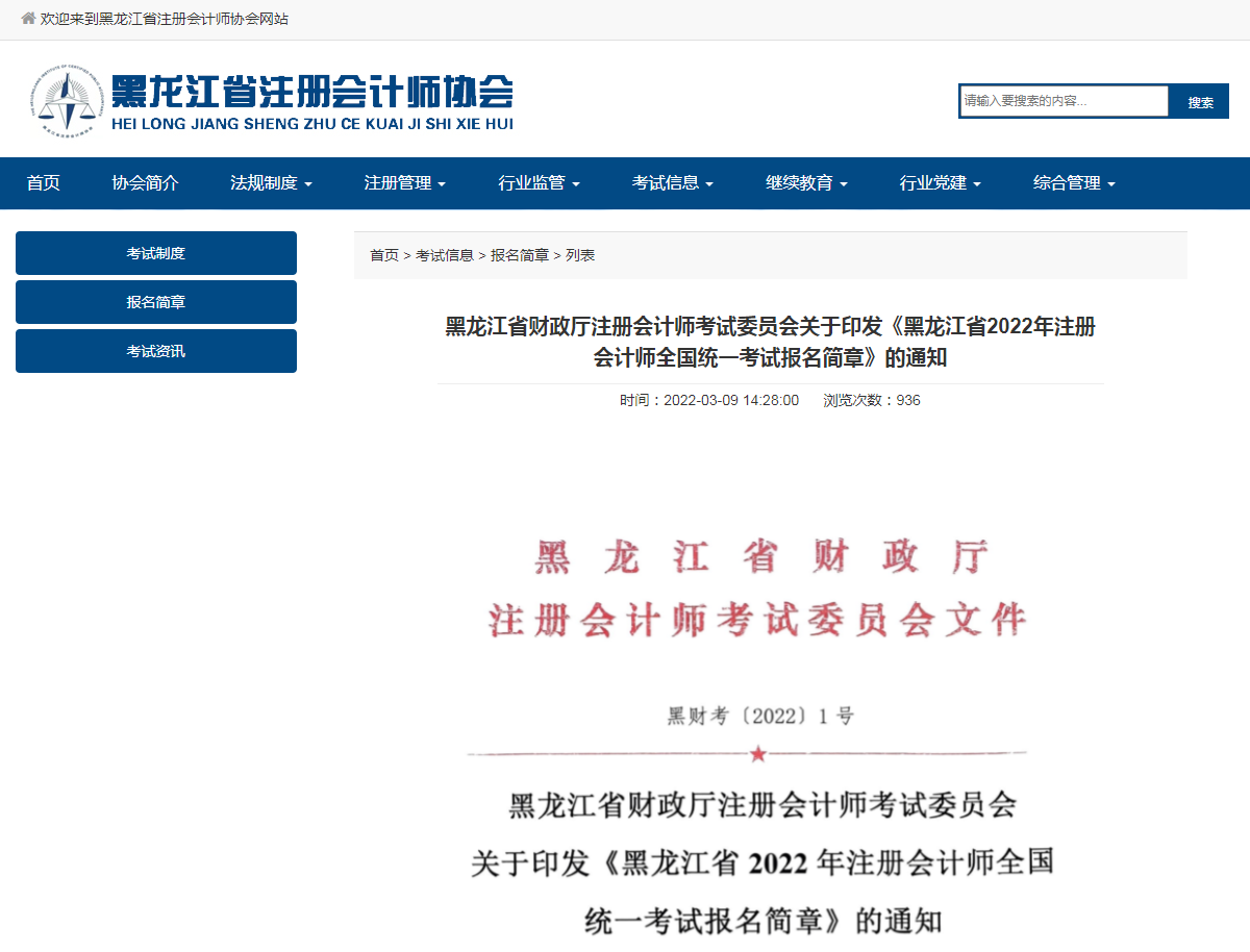 黑龙江省2022年注册会计师全国统一考试报名简章