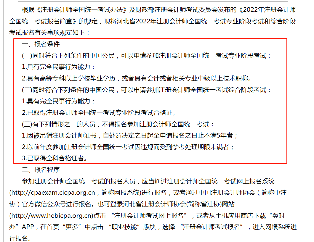 学会总结比刷问题更重要,注册会计师CPA职称考试的重点在于“总结”两个字,因为考题是不断变化的,无穷无尽,但是问题的类型是有限的,当你看到一个问题时,不要急于先做,你可以先问问自己,这个问题的考点是什么,这个知识点的命题模式是什么,每个命题模式的解决方法是什么,在这个过程中,知识可以在头脑中被组织起来,加深印象,当你做更多的题时,你会有一种熟能生巧的感觉,简而言之,你所要做的就是阅读题目,找到知识点,思考命题模式,思考解决问题的方法,再选择答案。上考教育根据河北注册会计师协会官网发布的2022年注册会计师报考简章中了解到,河北省注册会计师今年的报考条件主要有以下三项:
