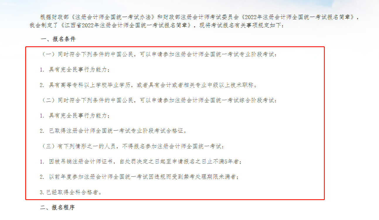 注册会计师的内容繁多,建立自己的知识库,建立自己的知识搜索引擎理解知识点比准确性更重要,在知识点之间建立逻辑,不仅提高了学习效率,而且提高了检索效率,甚至达到“你以前看到的东西几秒钟就能找到”的程度,当我们需要一个知识点时,我们不翻书,而是从自己的头脑中寻找和提取知识点,这将大大提高我们的学习效率。上考教育根据江西注册会计师协会官网发布的2022年注册会计师报考简章中了解到,江西省注册会计师今年的报考条件主要有以下三个方面: