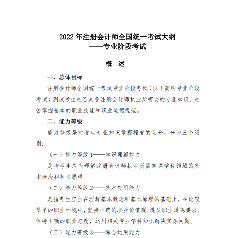 上考教育根据注册会计师协会发布的2022年注册会计师CPA专业阶段考试大纲文件得知,概述部分主要包括考试的方式方法和内容,全方位阐述该项目考试对应的常识,方便考生有个全面的认识,以下就是详细信息: