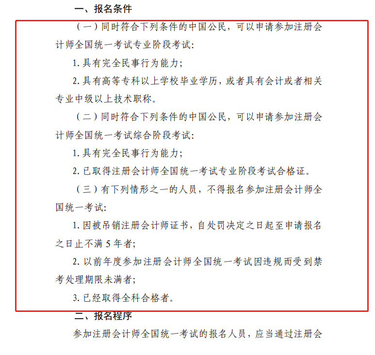 (二)同时符合下列条件的中国公民,可以申请参加注册会计师全国统一考试综合阶段考试: