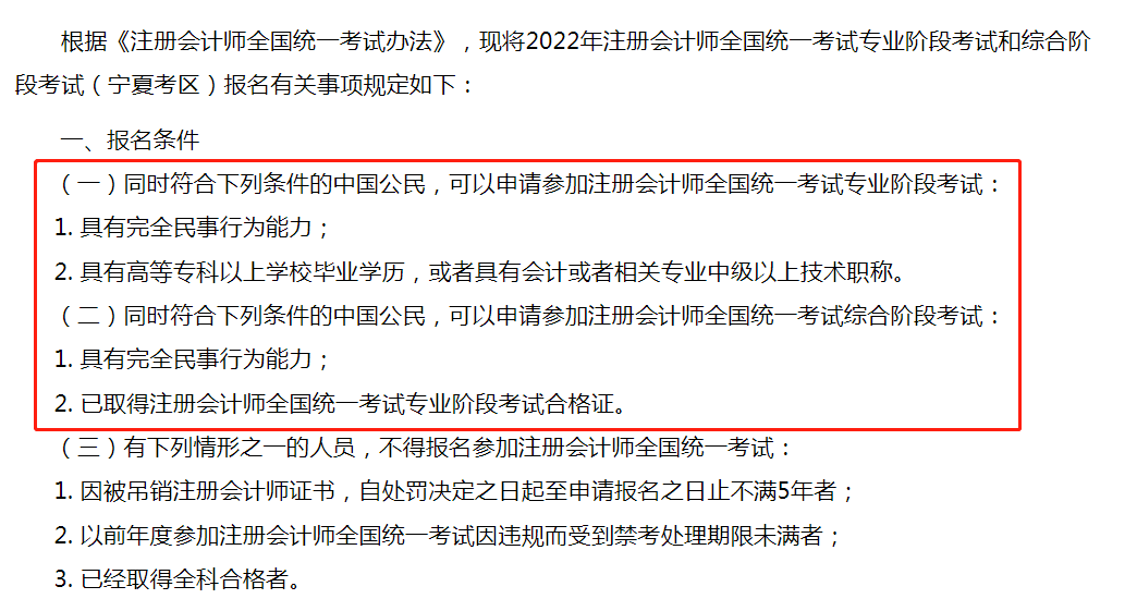(二)同时符合下列条件的中国公民,可以申请参加注册会计师全国统一考试综合阶段考试:
