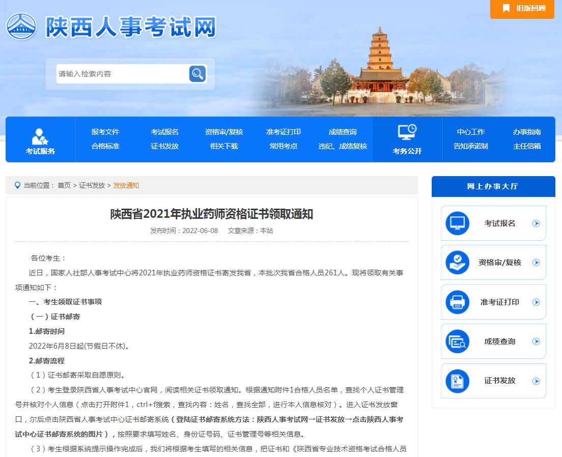 上考教育从陕西人事考试网获悉,2021年陕西省执业药师资格合格证书已于6月8日起邮寄,对于考试中的各种类型的讲解和提问都必须认真研究,在这一阶段,我们必须合理安排时间、上课时间和锻炼时间,那天一定要跟上课件的进度,给自己布置作业,最好那天晚上做,因为他们都在同一时间学习,如果你欠了很多知识内容,你会有一个大脑袋。以下就是本次公告的详细内容: