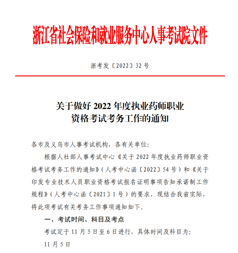 根据人社部人事考试中心《关于2022年度执业药师职业资格考试考务工作的通知》(人考中心函〔2022〕54号)和《关于印发专业技术人员职业资格考试报名证明事项告知承诺制工作规程》(人考中心函〔2021〕1号)的要求,现结合我省实际,将此项考试有关考务工作事项通知如下。