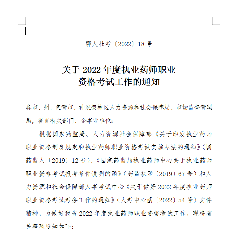 根据国家药监局、人力资源社会保障部《关于印发执业药师职业资格制度规定和执业药师职业资格考试实施办法的通知》(国药监人〔2019〕12号)、《国家药监局执业药师中心关于执业药师职业资格考试报考条件说明的函》(药监执函〔2019〕67号)和人力资源和社会保障部人事考试中心《关于做好2022年度执业药师职业资格考试考务工作的通知》(人考中心函〔2022〕54号)文件精神,为做好我省2022年度执业药师职业资格考试工作,现将有关事项通知如下: