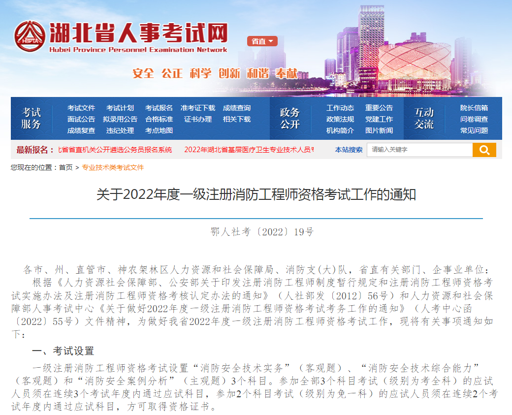 为更好地在疫情防控工作常态化下开展考试,一级注册消防工程师资格考试设置武汉、宜昌、襄阳、荆州、荆门、随州、省直考区。