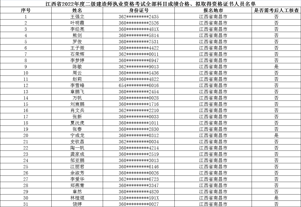 江西省2022年度二级建造师执业资格考试全部科目成绩合格、拟取得资格证书人员公示
