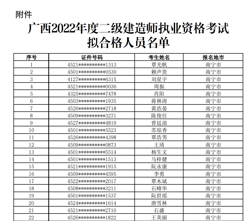 广西2022年度二级建造师执业资格考试拟合格人员公示