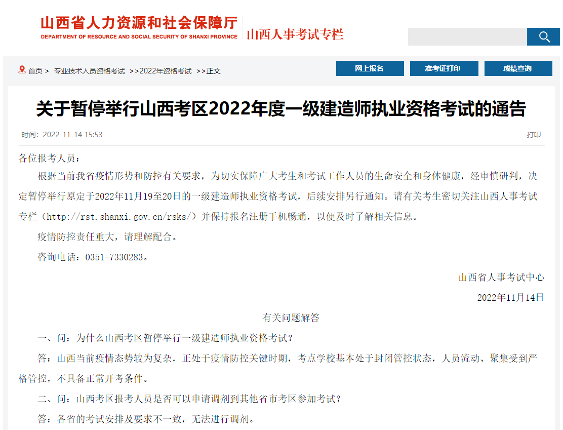 一、问:为什么山西考区暂停举行一级建造师执业资格考试?