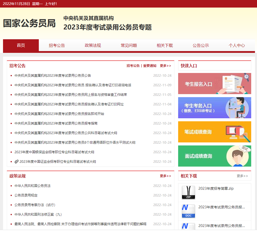 上考教育从全国各大人事考试网官网以及国家公务员官网获悉,2024年国考不会因为疫情原因而推迟,国家公务员考试即将于11.29日开始打印准考证,12.3日-12.4日笔试,离考试仅有不到一周的时间,各地未发布考试延期推迟的公告,而是以重新选择考试地区和严格的防疫要求来应对疫情带来的风险,足以说明国考非比一般的考试,历年来也从未有国考停考的情况出现,所以广大考生要安心的准备考试,不要胡思乱想,不必担心会延期考试或者停考的事情发生,只要能出门参加考试,带上相关证明文件就正常参加考试了。如果实在不放心,就可以直接拨打相关咨询考试电话,2024年国考考务咨询电话010-87901866、84237866、84237802,咨询时间:2022年11月6日至12月4日,工作日8:30-17:00。现将有关事项公告如下: